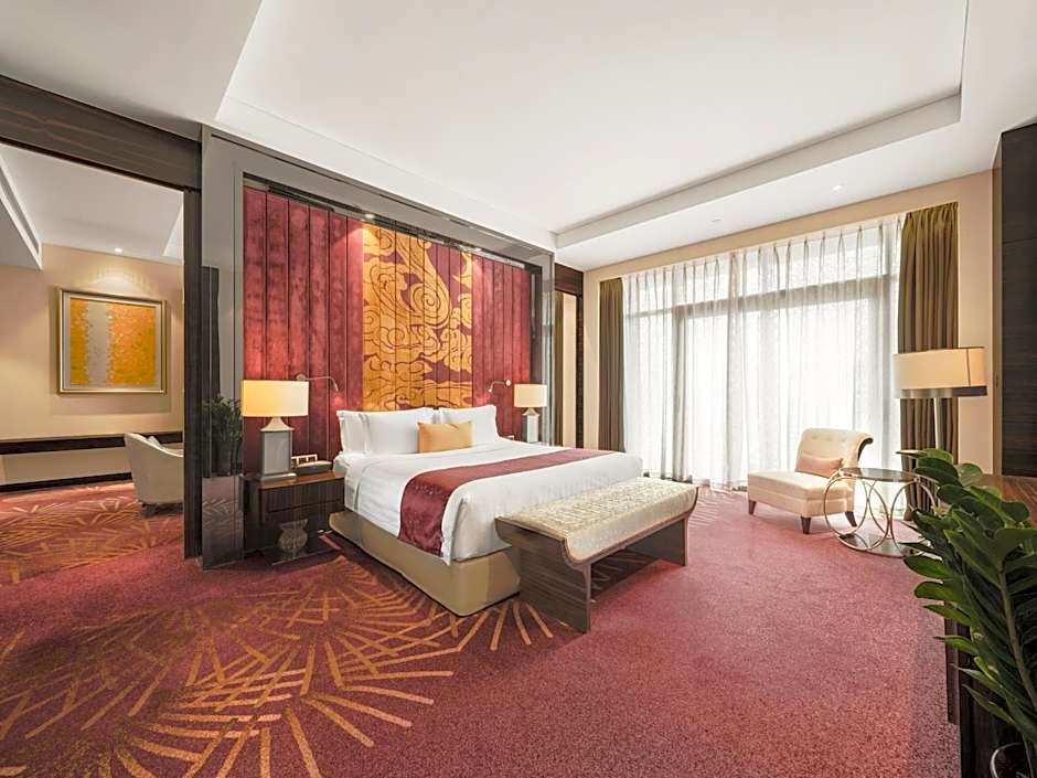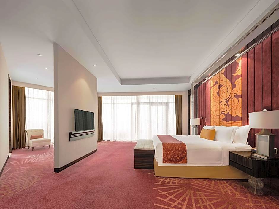 This suite provides a seating area, a bathtub, a flat-screen TV, mini-bar and Executive Lounge access.