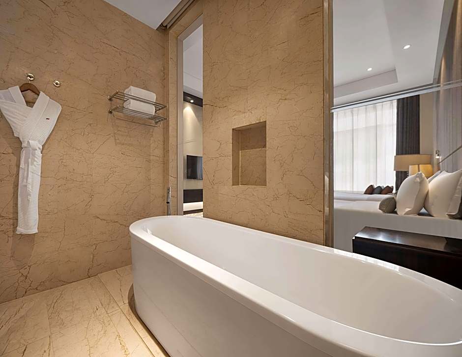 This twin/double room provides a bathtub, a flat-screen TV, mini-bar and Executive Lounge access.